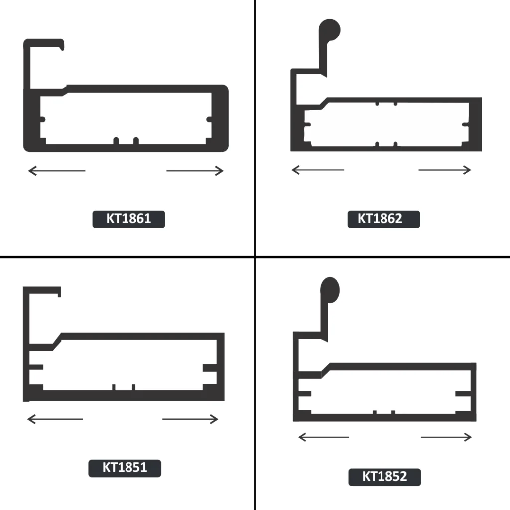 KT1851 | Frame Profile 50MM | 20 | 3 | Annodized, Black Matt, Rose Gold, Satin Brush, Glossy, Golden, Gold Brush Matt, Iron Grey, Champagne Ma |